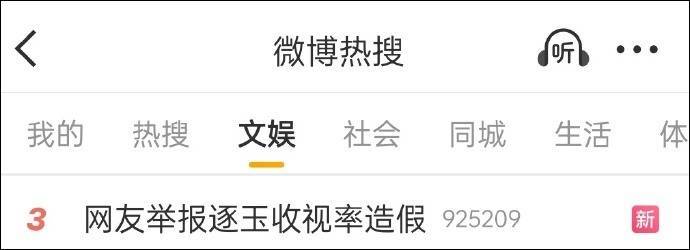 3月9日,#网友举报逐玉收视率造假#冲上热搜,引发网友关注讨论。