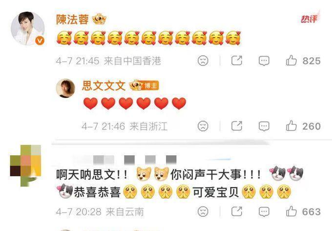 陈法蓉在第一时刻送上了祝福,这也算是一种梦幻般的联动。