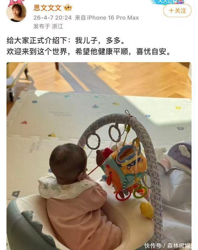 思文分享了儿子的照片,给他起名叫多多,期望他的孩子身体健康、心情愉快。